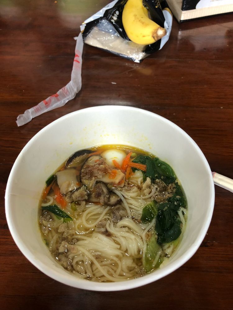 到CP3,这个点,最后的下坡很爽,我飞了很舒服,然后就是我最爱的永康土面!清淡,面口感好,营养也足,肉丝、鹌鹑蛋、胡萝卜丝、香菇丝,面细而不烂!吃好,出发!