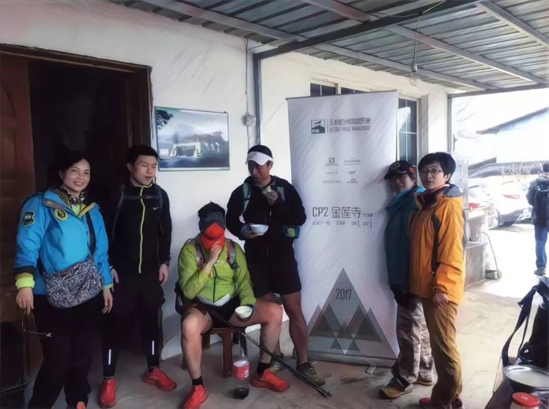 到了 CP2 金莲寺,找到里昂铁粉-贪玩姐,安排我休息,给我盛了一碗馄饨+榨菜,还问我酱鸭吃不吃。可惜我赛前突然牙痛,不敢嚼东西。左右坐着的哥们全部打算退赛,比赛当天气温到了 21 度,热到很多人中暑。