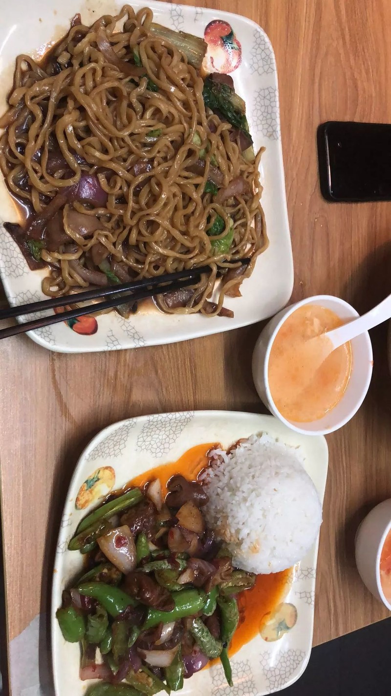 青芝坞广场领完装备,一群人直接去了老妈妈手擀面。在众目睽睽下,我点了一份拌川一份盖浇饭。美其名曰:碳水大餐,事实证明有时候总感觉不饿,但真的吃起来却无法停止。