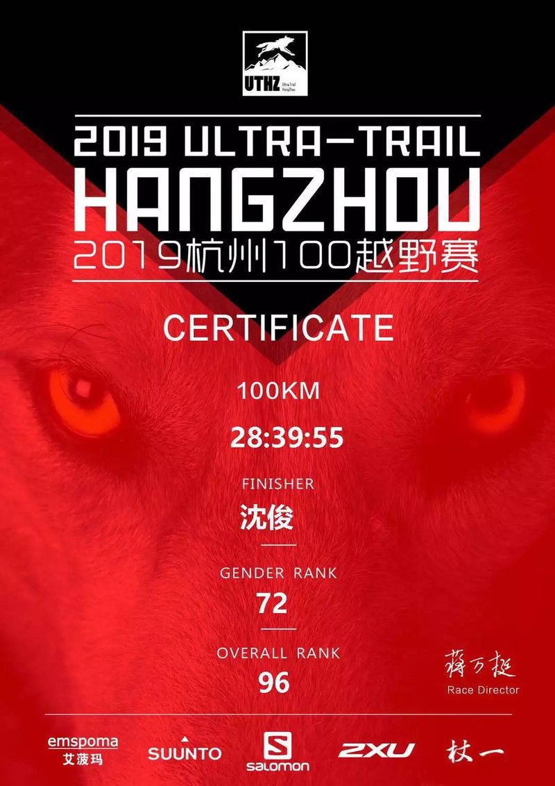 坐不到 5 分钟,继续往浙大去,石人亭不到的地方坐了会再出发,有妹子要跟我,说我节奏好。“妹子,哥哥下坡快,你是跟不住我的”继续下到 700 档,又见甲鱼,这次手里拎着一袋奶茶,果然一点就通,出了浙大就是 CP4,又在众目睽睽之下,我开心得喝起了奶茶,毕竟跑出了风浙线 PB,11h16m。换袜子,充手表,吃官补,简直一气呵成。可我还是在CP4待了超过1小时,为了等琼妈。但等到了琼妈,发现再等下去,要超出计划不少,赶紧走,对不住了,琼妈啊。我要完赛,要完赛奖牌和完赛服。(最后琼妈 cp9大爆发,跑出 6 年来大 PB,27h54m)
